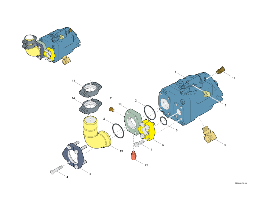 項(xiàng)目零件號(hào)名稱數(shù)量備注再制造件號(hào)L COMPLETE _ASSEMBLY-HY.TRANSMISSION 1 HYDRAULIC TRANSMISSION-0663922500 O-RING 1 126,59X 3,5370 SHORE-0663923300 O-RING 1 101,19X 3,5370 SHORE 40 0301237800 PLAIN WASHER 2 17 / 30 X 3 - HB 200 FZB 41 0211147903 SCREW 2 MC6S M 16 X 50 - 8.8 FZB 42 5540249900 WASHER 2 WASHER-FLAT 1/2 SS 43 0144336503 SCREW, HEX HEAD 2 1|2"-13NC X 1 1|2" LG., UNC 1/2 X 38- 8.8 FZB 44 0570704118 ELBOW NIPPLE 1 B1 18 20 UN 30,16 1 3/16 45 0570702524 NIPPLE 1 B1 18-20 UN 1 3/16-12 46 5501177500 TEE 1 TEE-RUN (ORS/O-RING) 47 0570704914 T-NIPPLE 1 E1 10 - 3/8 - UNF 11/16-1 48 0570706510 TEST CONNECTION 1 BUSSNING TESTUTTAG 49 0661102000 SEAL WASHER 1 TREDO 1/4 13,7 / 20,6 X 2,1 - FZ ST 50 5580013565 MOUNT 1 BLACK 51 5501184800 NIPPLE 1 E2 52 5580013564 PLATE 1 BLACK 53 5580012264 TANK COVER 1 FILLER CAP 1NPT THREADED 54 0301232100 FLATWASHER 2 6,4 / 12 X 1,6 -HB200 FZB 55 0147125203 SCREW, HEX HEAD 2 M6 X 40 - 8.8 FZB 56 0570704130 ELBOW NIPPLE 1 B1 22 25 1 - UN 1 7/16-12 57 0570700006 STRAIGHT NIPPLE 1 B1 22 25 UN 1 7/16-12 UN 58 0570700008 CAP 1 B 6 UNF 9/16-18 60 0570704118 ELBOW NIPPLE 1 B1 18 20 UN 30,16 1 3/16 61 0580220200 PIPE COUPLING 1 PR.WORK 250 BA 62 5500757700 NIPPLE 1 ELBOW-90 (ORS/PIPE), ELBOW-90 (ORSPIPE) AB3 6060012472 BREATHER FILTER 1 FCP1-PUMP SET 1 DOUBLE GEAR PUMP SET HS-HOSE SET 1 TRANSMISSION VPLS1-PUMP SET 1 MAIN PUMP SET
